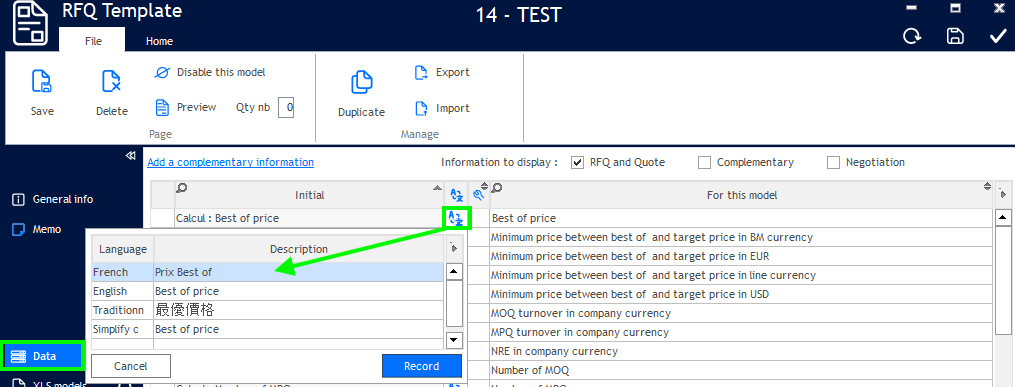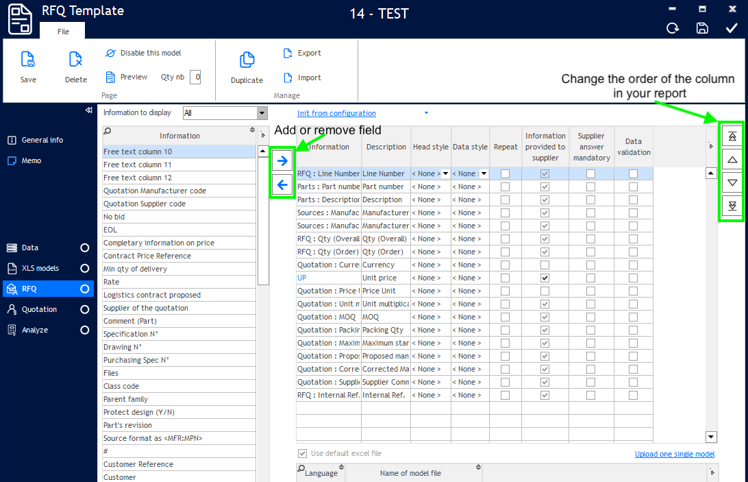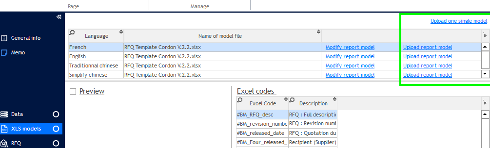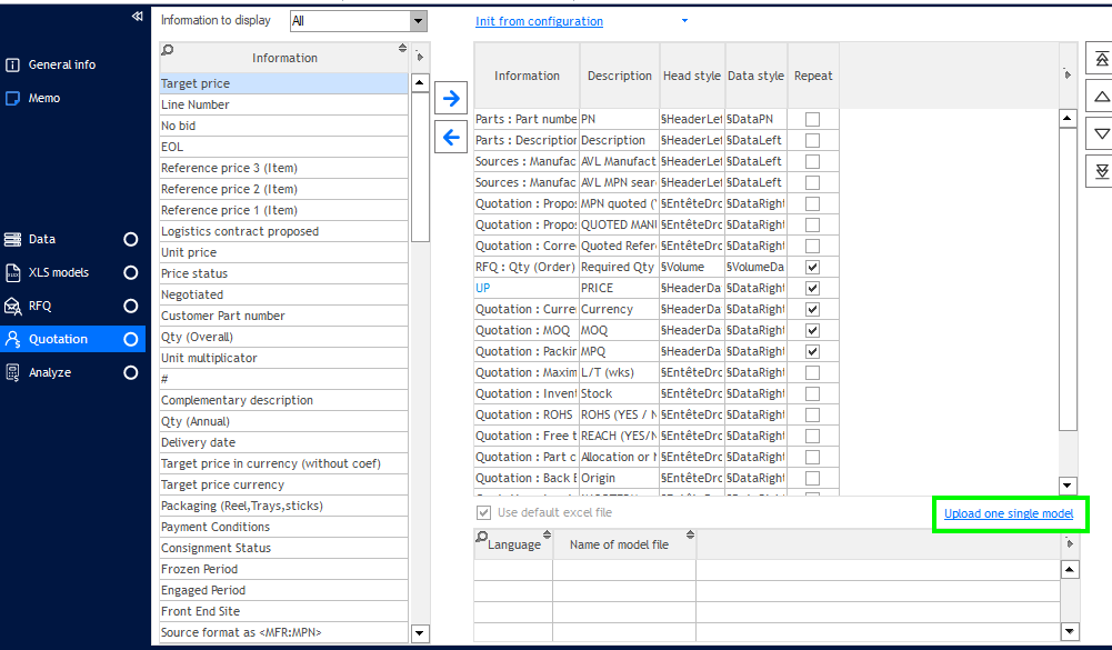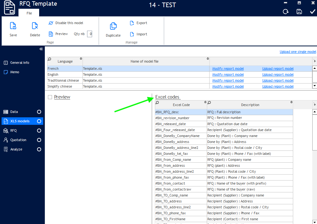 - How to Define Specific Excel Models for RFQ, Quotation, or Analysis Reports