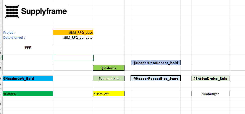 Codes starting with `#BM_` can be inserted into the Excel file and will be dynamically replaced when the RFQ is generated for a specific supplier.