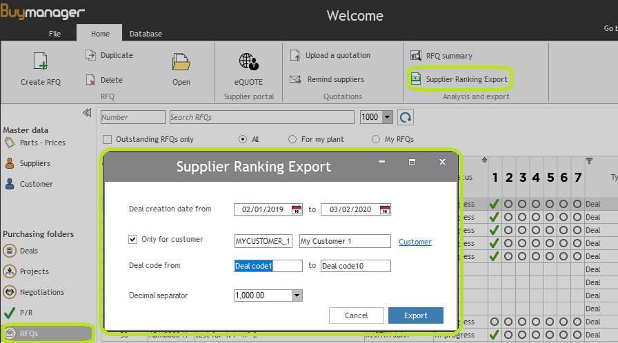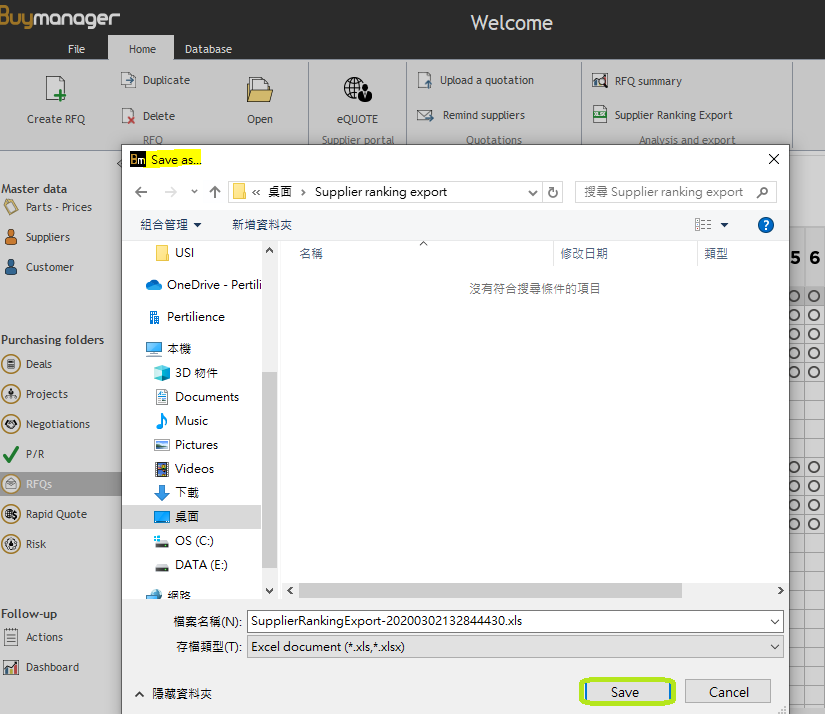We have an exciting new function “Supplier Ranking Export“ in Buymanager V4.4. This function will according to the lead time status, quoted prices, supplier reply date… etc to help users automatically rank suppliers, so user could have more detail information to communicate and negotiate with suppliers. Also, this function could filter based on deal creation date, customer …etc to let users could have a better overview of parts quoted status. How to process Supplier Ranking Export?