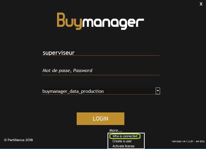 - Start Buymanager with an Administrator account