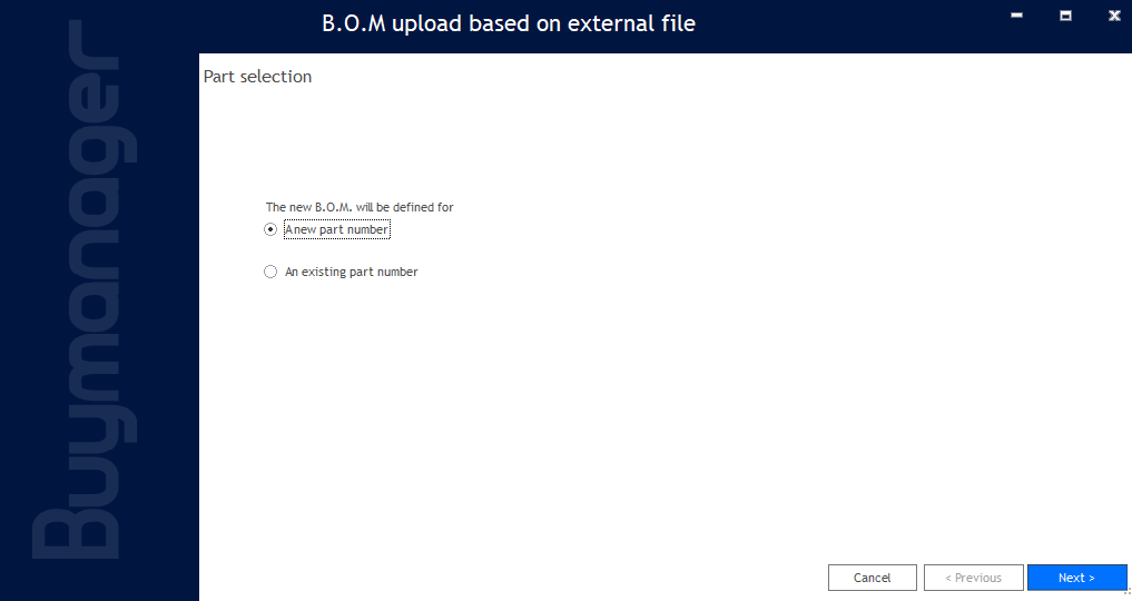 - Existing BOM: You must have already uploaded the "standard" BOM for your deal into Buymanager before attempting to upload customer prices. This process adds prices to an existing structure.