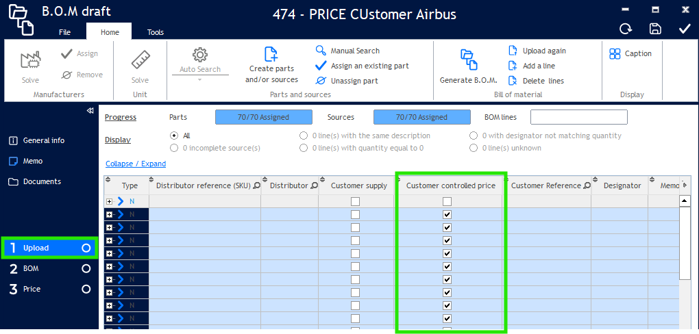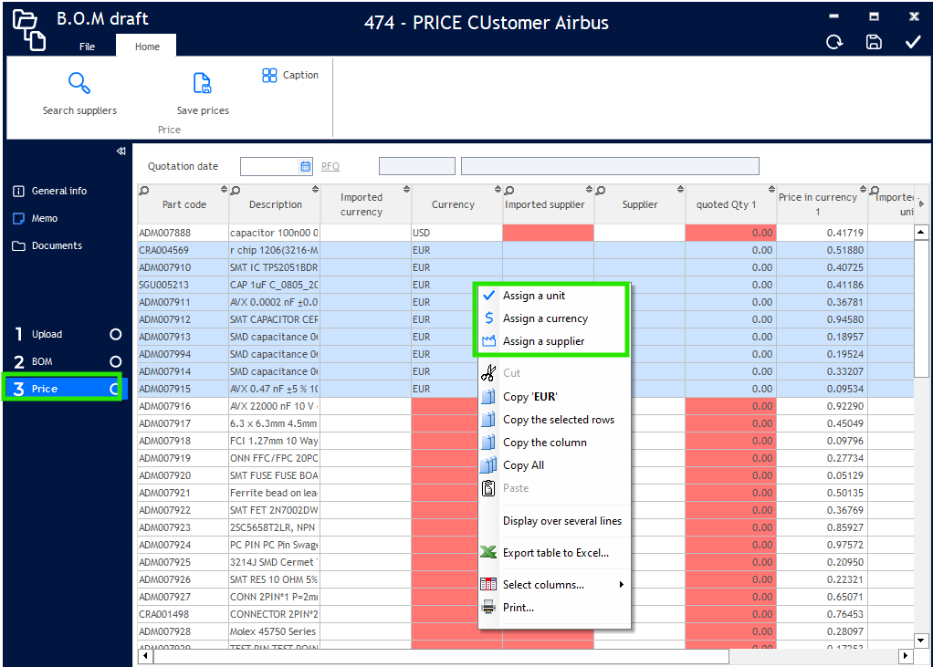 - Situation: Your customer has given you a BOM that includes their preferred pricing for certain components, and you need to use these prices to generate a quotation for your deal.