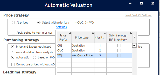You will also be able to set a priority as you see fit for those price within your Automatic Valuation: