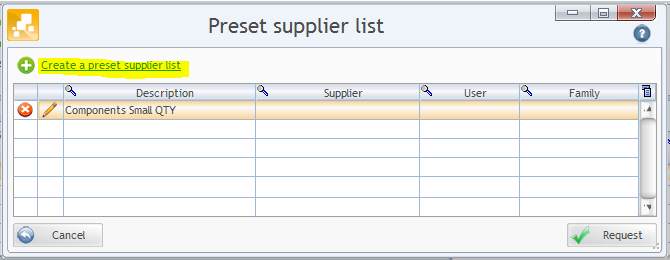 Buymanager already have line card inside. To speed up the RFQ initialization wher suppliers are common et known at starting on the needs enter, Buymanager add a tool allowing user to create predefine list of suppliers et giving the possibility to request it in 1 clic.