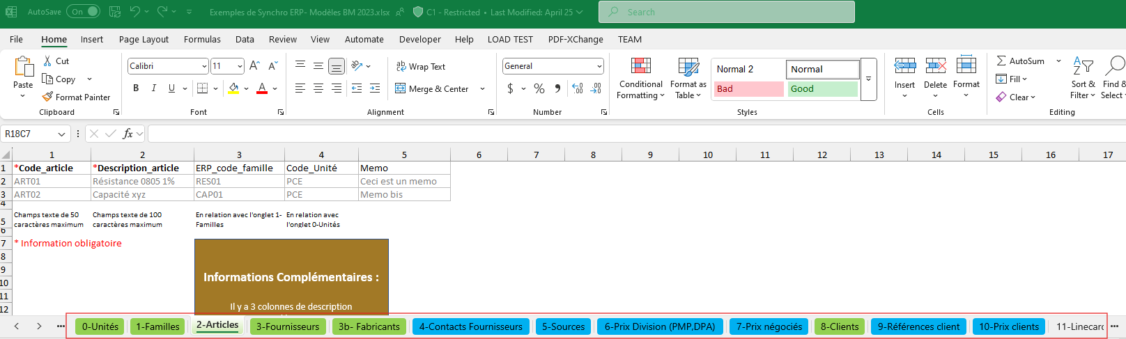 - File to upload : The ERP sync template type, for examlpe : Article_Liste = Part list