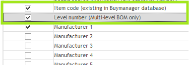 Item Code: This refers to the article code (part number) that already exists in your Buymanager item database.Level Number: This is specifically for multi-level BOMs and corresponds to theBOM Levelcolumn you set up in your Excel file.