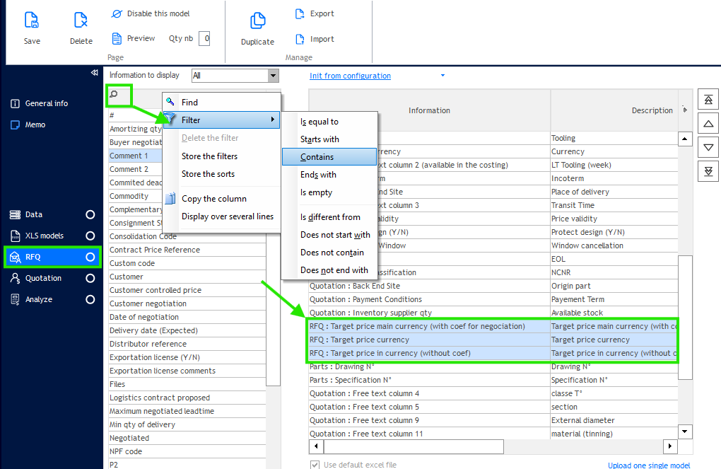 RFQ : Target price currencyTarget price in currency (without coef)RFQ : Target price main currency (with coef for negociation)