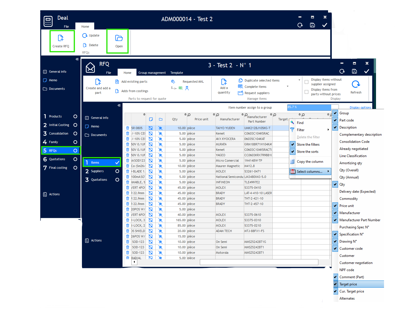 RFQ steps. - Create or Open an RFQ: Either create a new RFQ or open an existing one that you wish to modify.