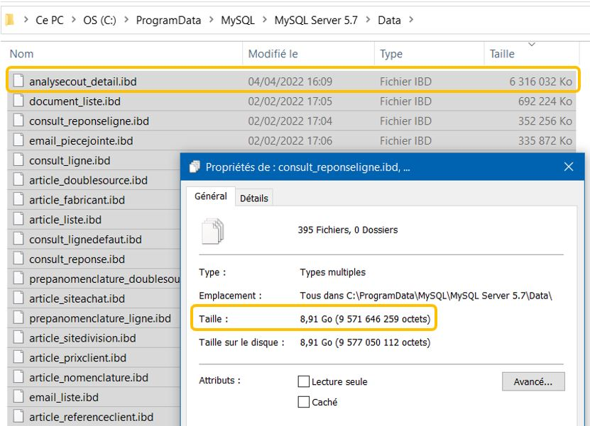 - Check the database and server size: the server space needs to be 3 times bigger than the database: You can do so by right-clicking on the database folder and then properties.