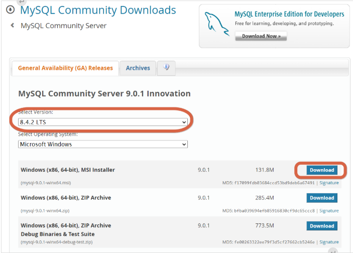 1/ Download MySQL 8.4.0: https://dev.mysql.com/get/Downloads/MySQL-8.4/mysql-8.4.3-winx64.msi