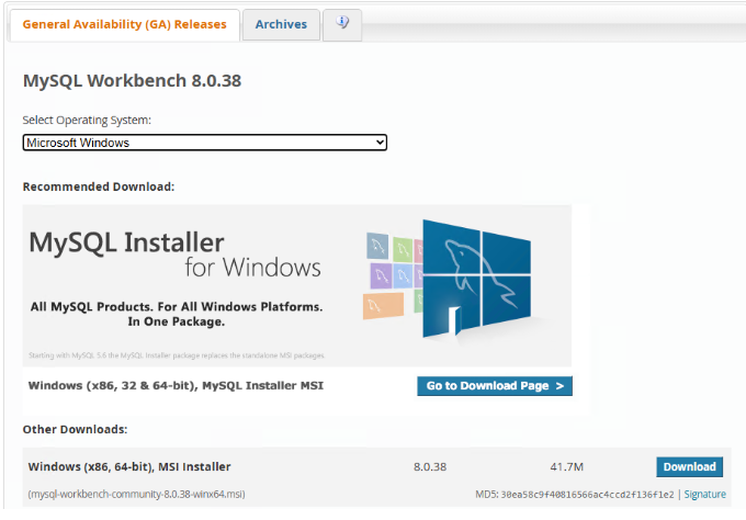 2/ Download MySQL Workbench 8.0 CE: https://dev.mysql.com/get/Downloads/MySQLGUITools/mysql-workbench-community-8.0.40-winx64.msi