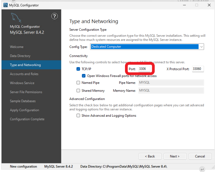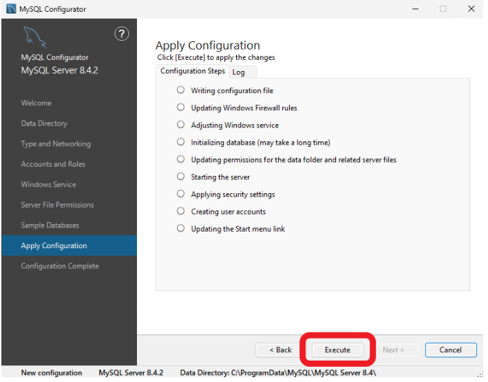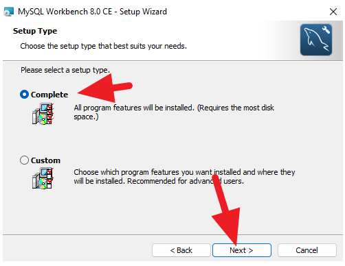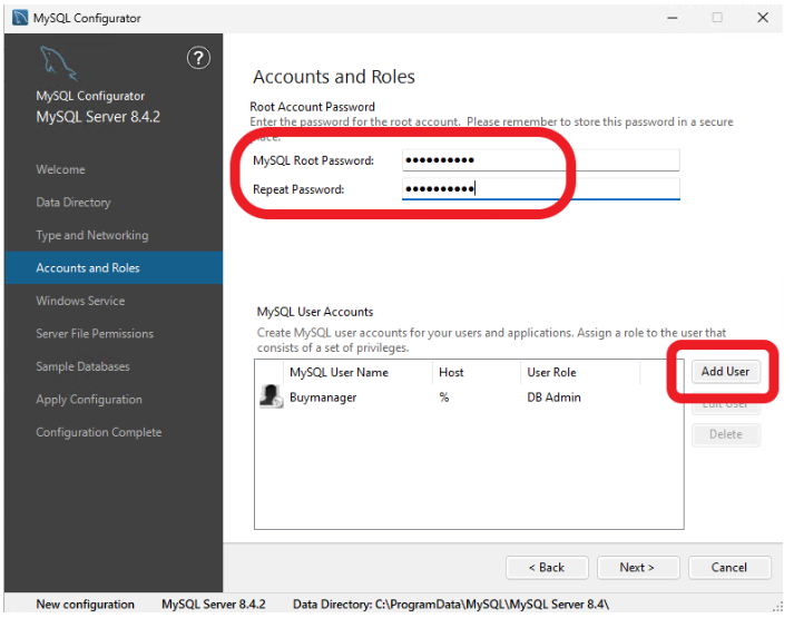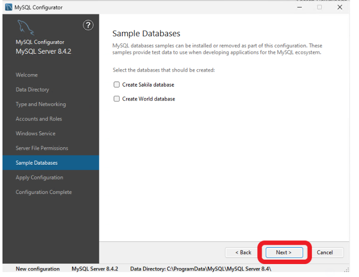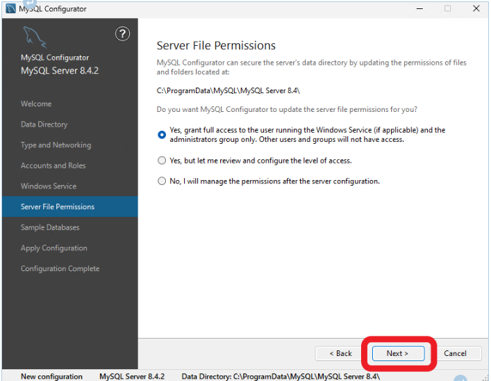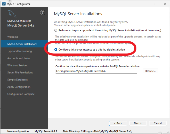 In MySQL Server Installations, choose the second option and then browse to choose a folder for databases or keep the default folder.