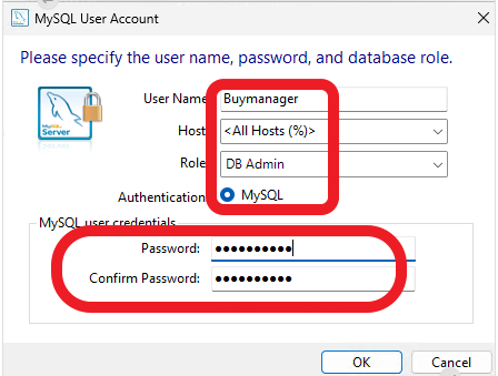 - Open CMD, navigate to ExeMySQL folder (cd C:\Program Files\Buymanager) and run :