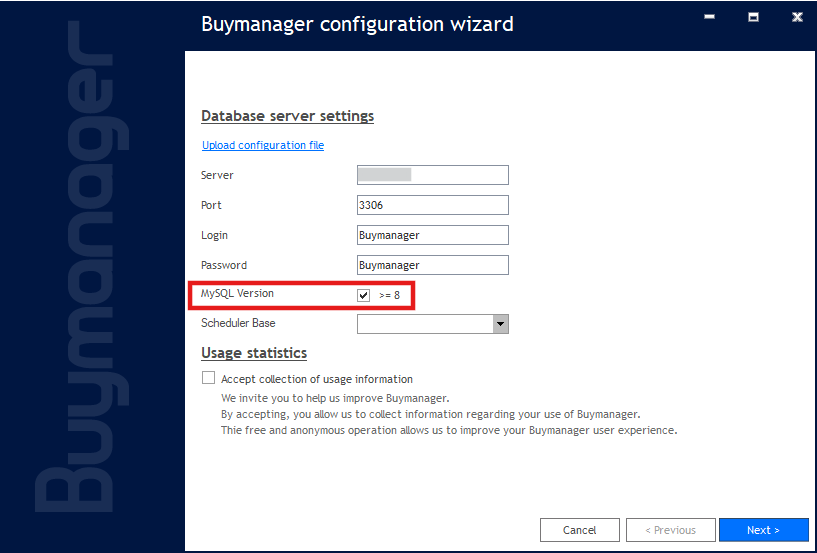 - Database will be imported to MySQL 8 by Buymanager or mysql.exe