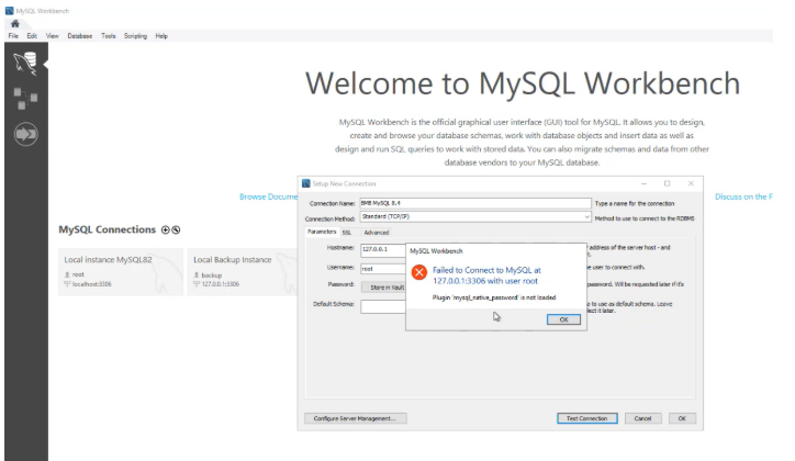 - Open MySQL Workbench and connect to the instance MySQL 8.4