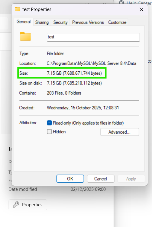 Step 2: Check the size. Navigate to the identified path and check the size of the database folder in Priorities