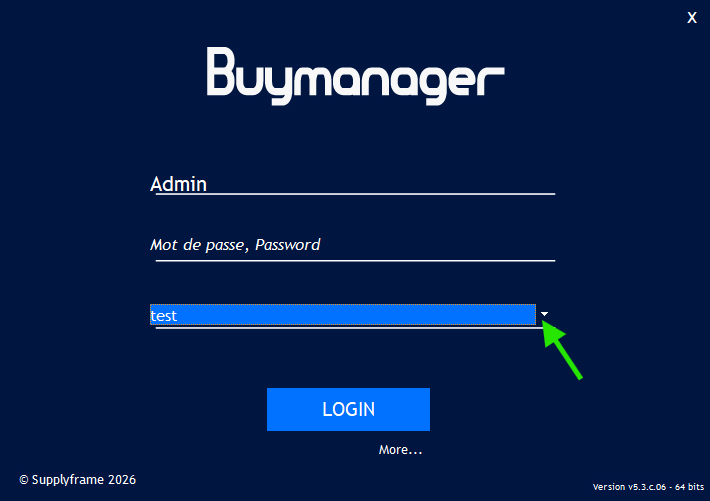 - Action: Open Buymanager and use the drop-down list to identify all databases that need to be transferred (e.g., Test, Training, Nego, Production).