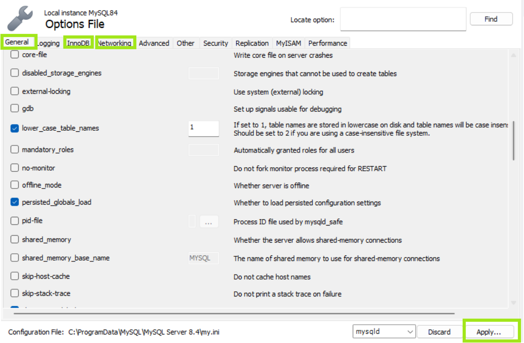 - Don’t forget to stop and restart the MySQL service in Workbench to apply parameter changes after.