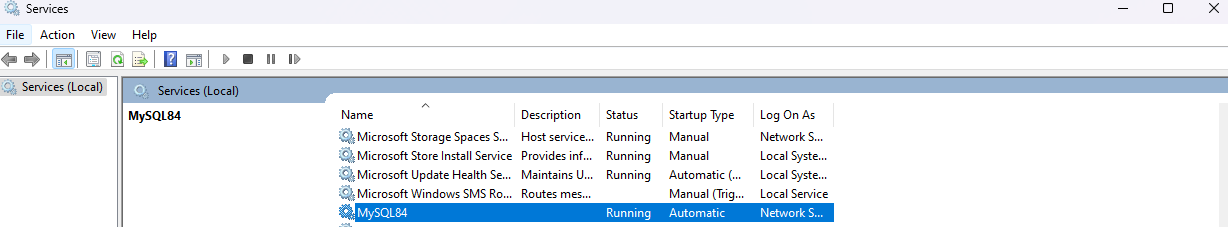 - Open your "Services" on your window, seach for the MySQL84 service, right click on it, to start them.